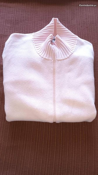 casaco rosa claro com fecho; 100% algodão;
