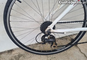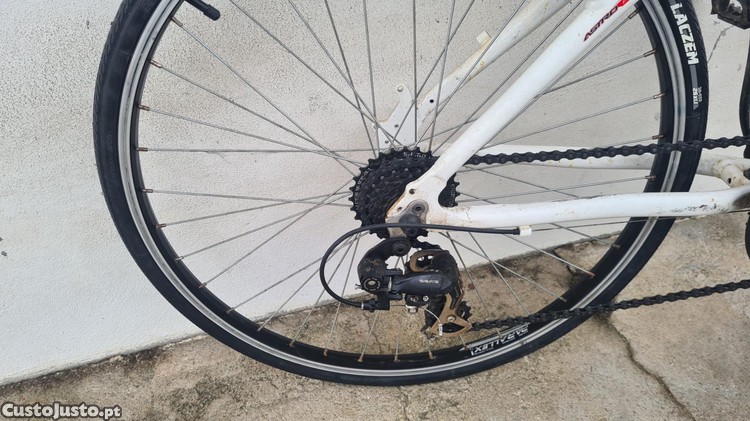 Bicicleta com pneus de estrada e entrega também dos pneus de BTT, podendo assim optar entre andar em estrada ou em terra.