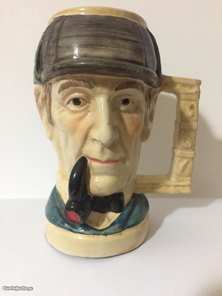 Caneca Sherlock Holmes com muitos anos. Altura - 13 cm. Altura da asa - 7,5cm. Base - 7 cm. Bocal - 6 cm. Em excelente estado de conservação. Não aceito propostas de valor inferior ao indicado. Acresce portes de envio