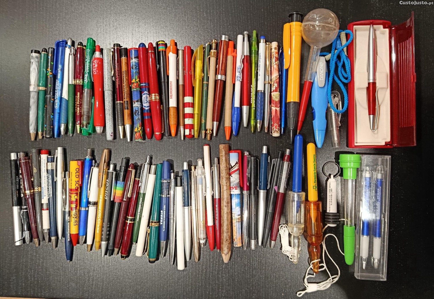 Conjunto variado de canetas de escrita, ideal para colecionadores.