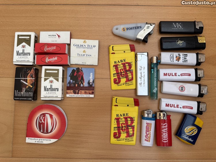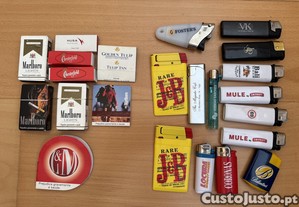 Lote de isqueiros e fósforos de colecção.