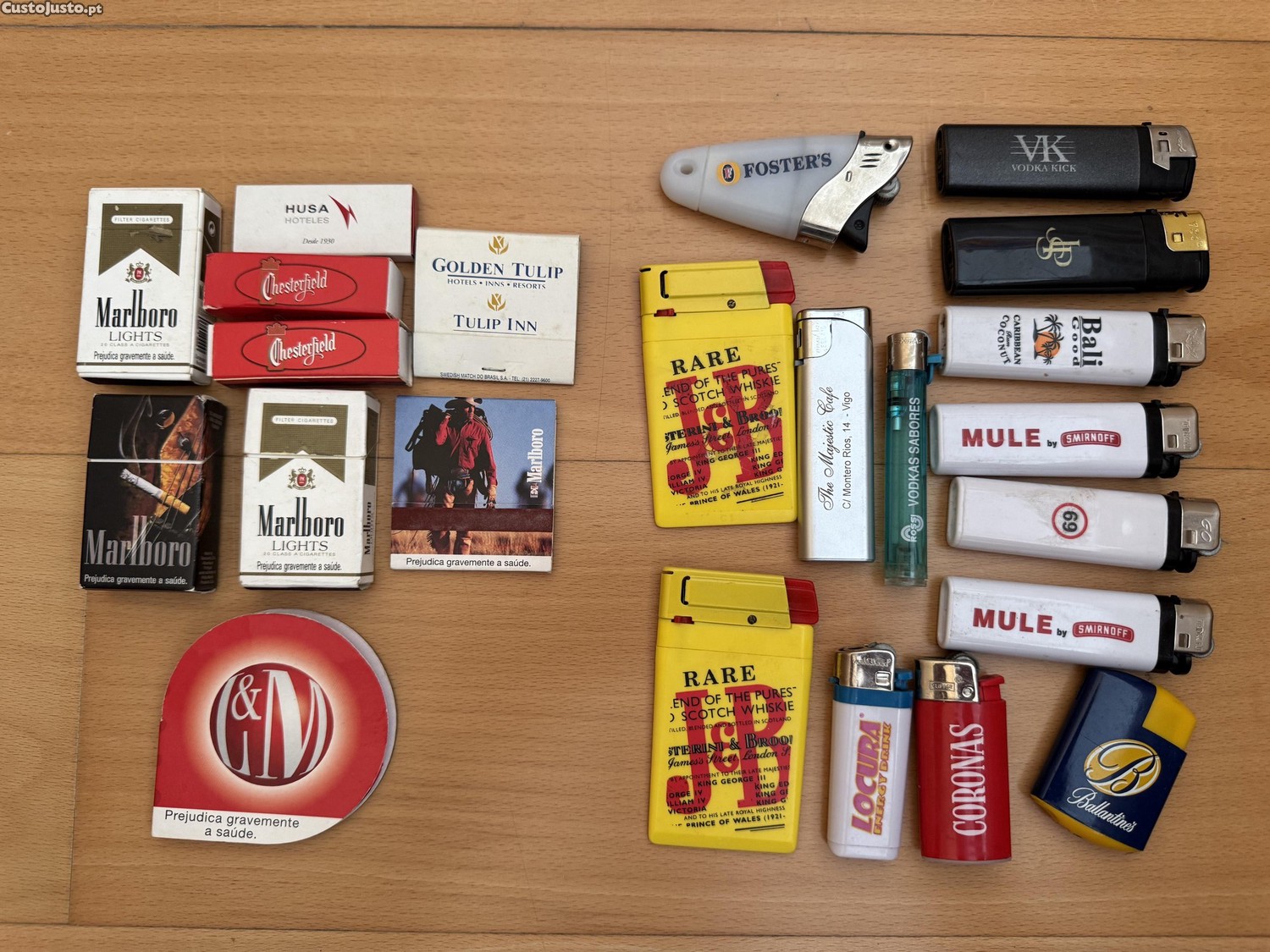 Vendo lote de vários isqueiros e fósforos de colecção.