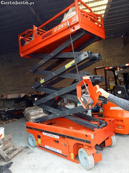 Vendemos plataforma elevatória em tesoura, elétrica, móvel, Nova. Altura máxima da plataforma 8 m, com altura máxima de trabalho 10 m. Carga 200 kg.