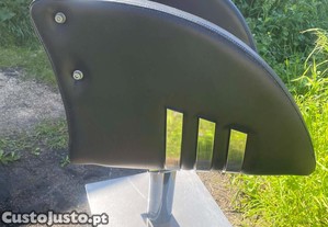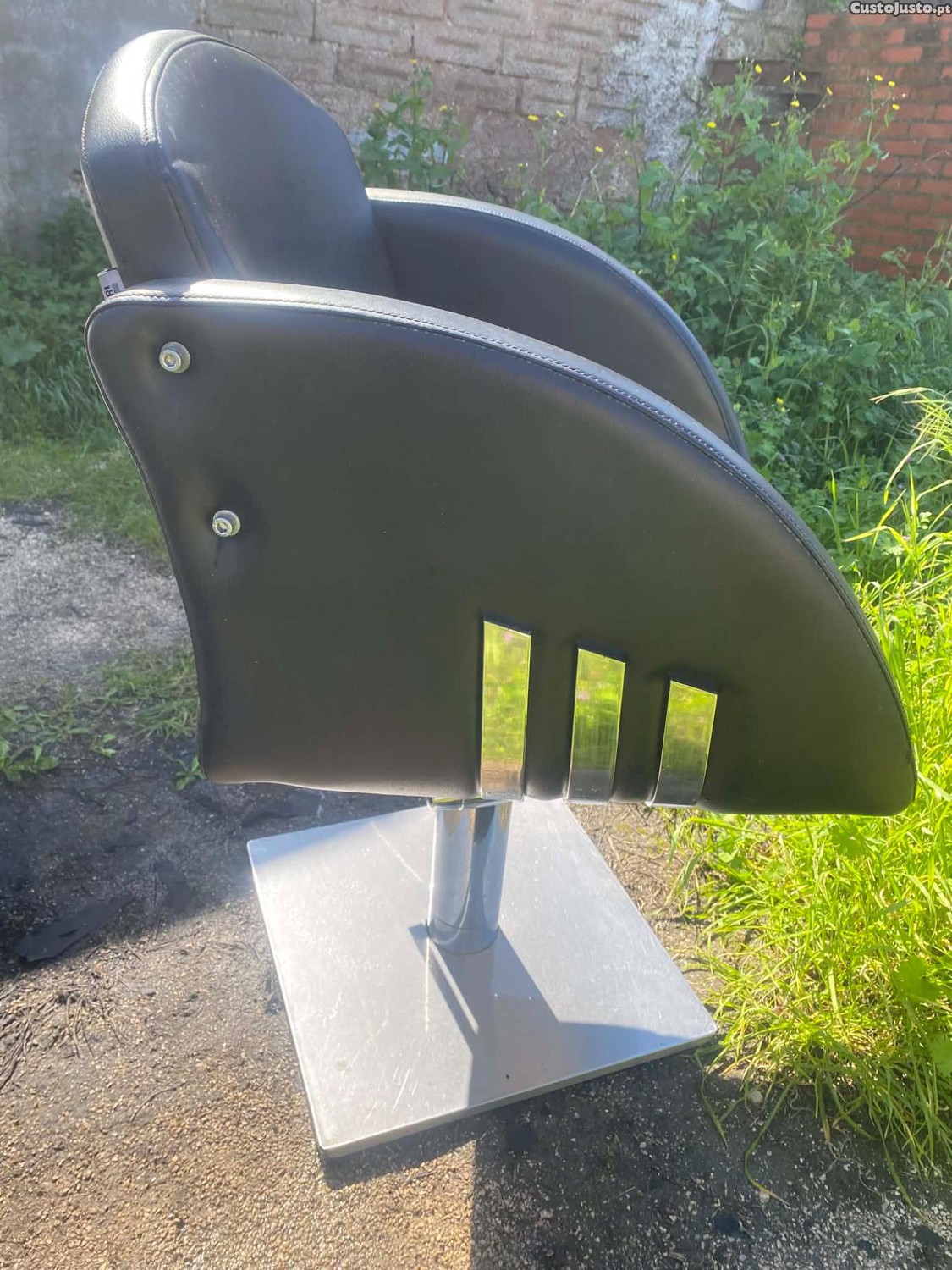 Vende-se cadeira de cabeleireiro usada em bom estado de conservação, com assento e encosto em couro preto.