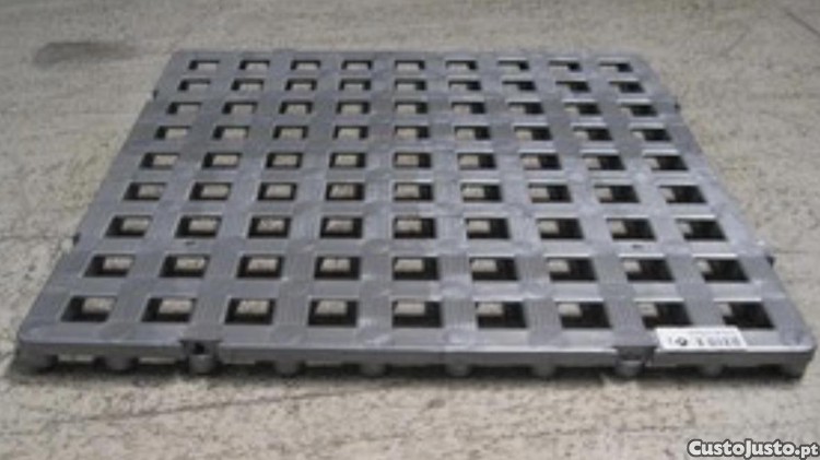 Cada estrado plástico muito resistente material novo Cor: Cinzento Dimensões:500x500x24 mm ideal para Balneários, Piscinas, Balneários Industriais, Laboratórios, Hospitais, Câmaras frigoríficos, matadouros industriais, Lavandarias, indústria química, isolamento de camiões. São unidos uns aos outros por um simples encaixe manual, Estrado de plástico 500 x 500 x 23,5mm. 4 unidades faz 1 metro quadrado, Anti deslizante, higiénico, facilmente lavável com água e detergentes.