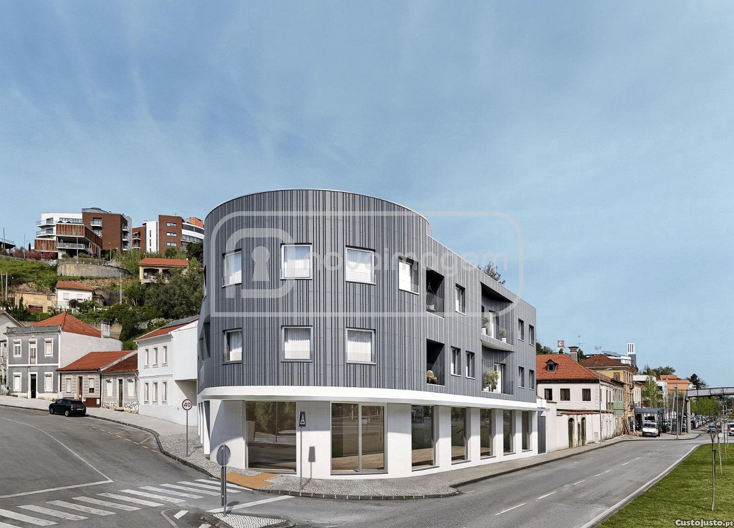 Distribuído por três pisos, o projeto combina habitação e comércio, com 9 apartamentos T1 e T2 e uma loja com zona exterior.