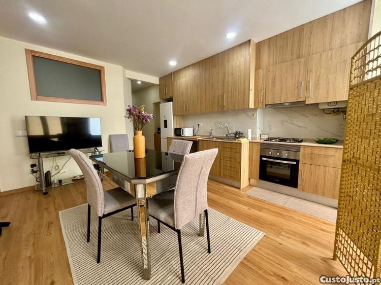 No piso inferior, encontramos um espaço moderno, composto por sala e cozinha em open space, equipada com gás, duas casas de banho e dois quartos. Este piso dispõe ainda de uma zona exterior, perfeita para lavandaria ou para criar um espaço de lazer com churrasqueira.