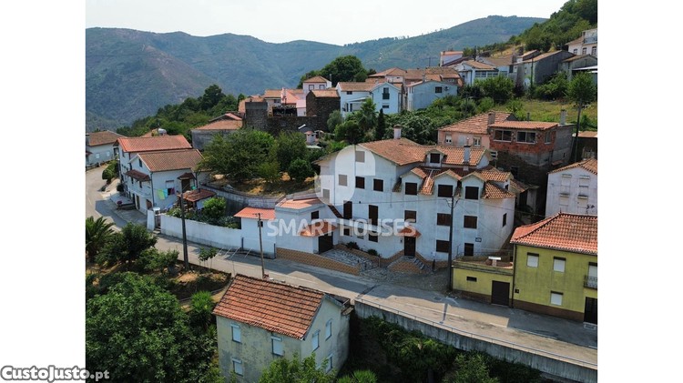 Moradia T6 em Torrozelas (Arganil) com anexos em terreno grande completamente ajardinado e vedado. O edifício é de construção tradicional, moderna, em betão armado e tijolo, com espaços de áreas muitíssimos generosas, com 2 acessos independentes, possibilitando a divisão da moradia em vários espaços que facilmente poderão ser destinados a pequena unidade hoteleira ou apenas alojamento local. Desenvolve-se em 4 pisos que acompanham o declive da povoação em que se insere perfeitamente - piso de entrada, ao nível da estrada principal das Torrozelas, com acesso a garagem e oficina. Acede-se a este piso através de grande hall, que dá, de um lado, para adega com decoração tradicional, balcão e espaço para petiscos e patuscadas, e do outro para amplo salão de jogos com mesa de bilhar, ping-pong, e grande lareira. - 1º piso, ao qual se acede através de grande escadaria revestida a madeira, onde encontramos espaço dividido em duas salas, uma de estar com lareira com recuperador, e outra de jantar, com portas de sacada para a varanda e para o terraço exterior, com vistas imponentes sobre a Serra do Açor. Também este piso encontramos a cozinha, completamente mobilada e equipada, despensa, copa para refeições e W.C. de apoio. - 2º piso, zona de quartos, com 1 quarto-suite, com espaço para vestir, W.C. completo privativo, com tecto forrado a madeira, e mais 3 quartos, com roupeiros embutidos, e ainda um grande W.C, completo comum. Do corredor que distribui para os quartos também se pode aceder a lavandaria e ao terreno exterior, de um lado, e do outro a porta exterior que dá acesso a rua pública posterior à casa, o que constitui um segundo acesso independente. - 3º piso, zona com grande hall, que poderia ser uma sala de leitura, e mais 2 quartos, um deles enorme, conde caberiam facilmente 4 camas de casal. Em redor na casa várias varandas e grandes terraços são palco privilegiado sobre a Serra do Açor. No terreno ajardinado, perfeitamente integrado com a casa seus terraços e va