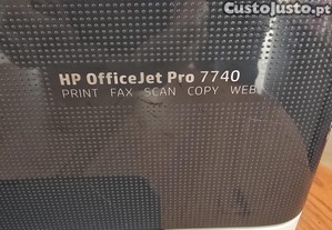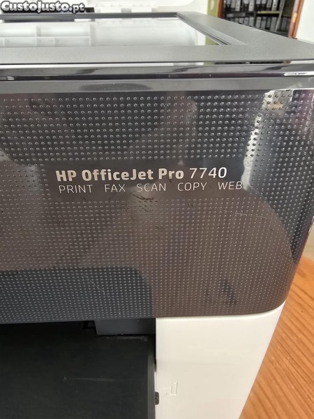 A HP OfficeJet Pro 7740 é uma impressora de formato largo (A3/A4) concebida para pequenos escritórios, oferecendo impressões, digitalizações, cópias e fax rápidos. Destaca-se pela impressão frente e verso automática (até A3), dupla bandeja de papel com capacidade total de 500 folhas, Wi-Fi integrado e ecrã tátil.