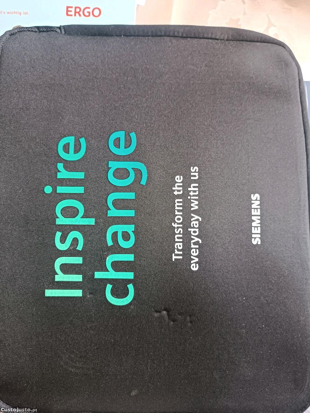 Pasta para portátil. Protege bem. Material alcochoado. Acompanha um mouse-pad.