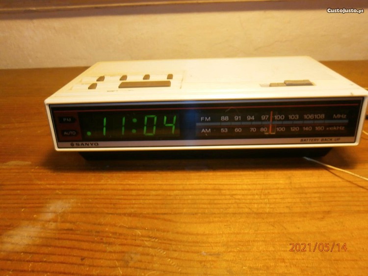 Excelente Radio Despertador SANYO, da década de 1980, em perfeitas condições de funcionamento, AM/FM, 7W de potencia de som, alimentação 220V, e bateria de 9v, para quando falha a luz, peça de coleção, estado de conservação como novo. Entrega em mão em Coimbra, ou envio por CTT, com portes a cargo do comprador, e, após, comprovativo de pagamento integral, por transferência bancária. Não atende chamadas com n. oculto.