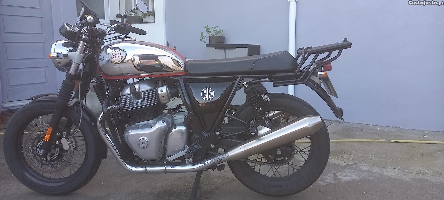 Para venda, INT 650 Mark II com melhorias nas suspensões, pneus bons, protetor de cárter e motor originais da marca, revisões em dia, escapamentos esportivos e de origem. Conta com pouco mais de 21.000 quilómetros. Motocicleta apaixonante. Estou a vendê-la para adquirir uma mais nova. Estudo troca por Royal Enfield INT Bear. Apenas negocio o preço com reais interessados aquando virem a mota pessoalmente.