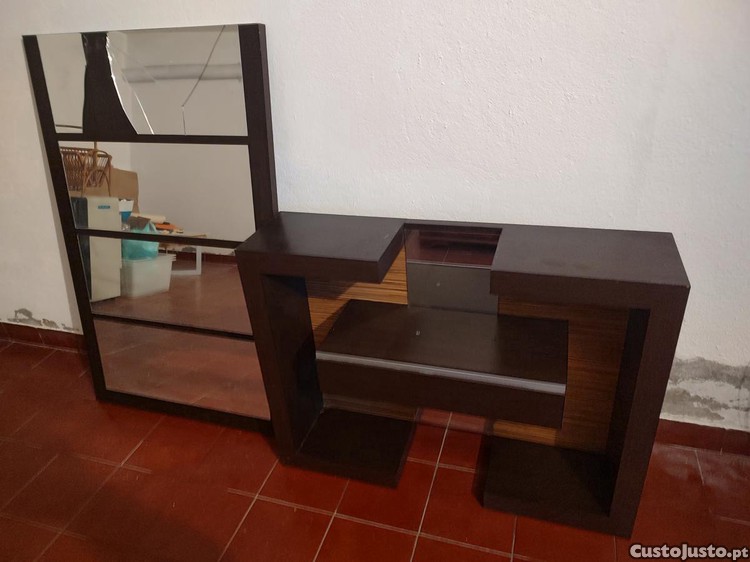 Móvel de hall mogno escuro com espelho.