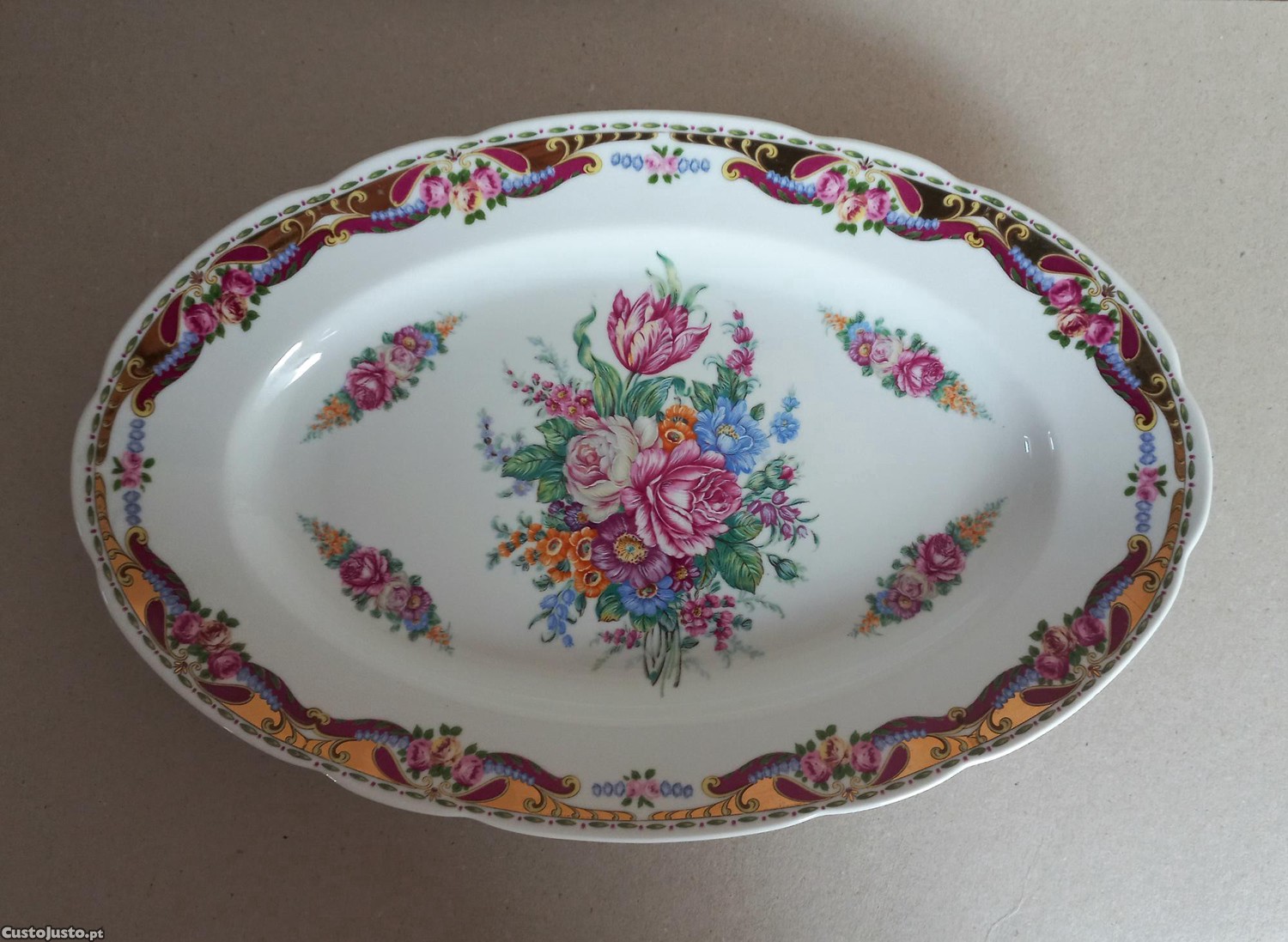 Travessa oval em porcelana Italiana marca Vizavi, ao estilo Limoges.