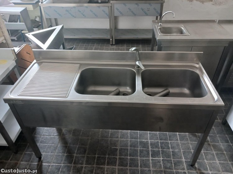 Produto: Bancada de Lavagem Inox de 2 Cubas com 1,6M - Usada