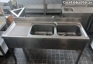 ACM1685 - Bancada de Lavagem Inox de 2 Cubas com 1,6M - Usada