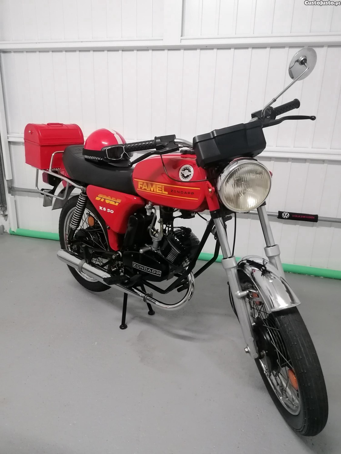 Famel Zündapp KS 50, em excelente estado geral e totalmente operacional. Uma verdadeira clássica portuguesa, preservada com cuidado e sempre guardada em garagem. Mantém a sua identidade original, sem retoques artificiais exatamente como muitos apreciadores gostam.