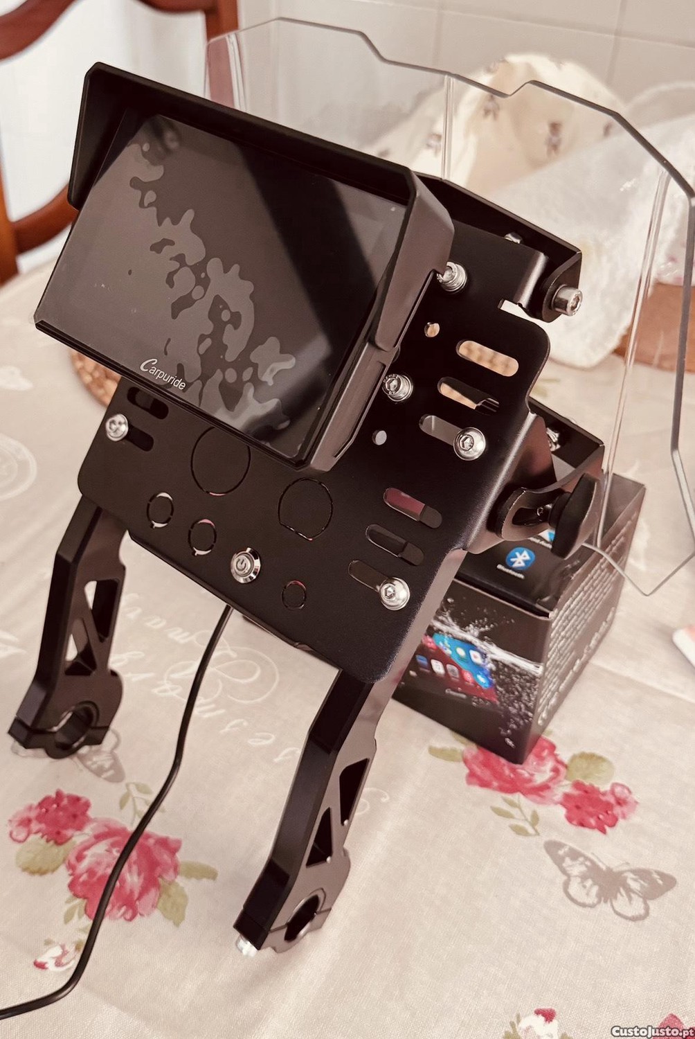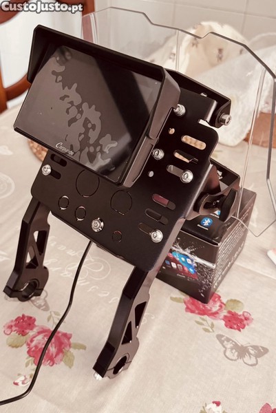 Vendo kit de navegação universal. Pode ser aplicado em qualquer mota de cross com guiador de 22mm ou 25mm, neste caso tenho aplicado numa XT600. A viseira é regulável em inclinação e oferece boa proteção aerodinâmica. Está equipado com um Carpuride W502pro + TPMS (controlo de pressão de pneus) e foi colocado um botão on/off e tem uma ligação preparada para ficar ligado diretamente à bateria da mota.