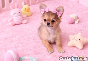 Chihuahua Fêmea miniatura de pêlo comprido c LOP Completamente vacinada