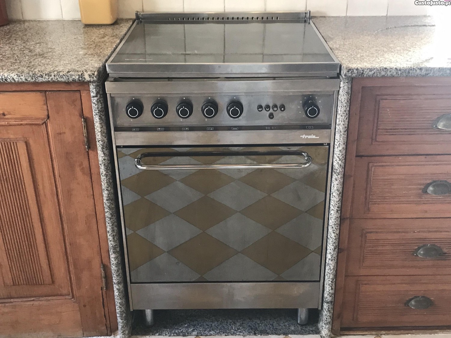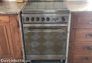 Fogão a gás butano inox, com placa eléctrica em bom estado.