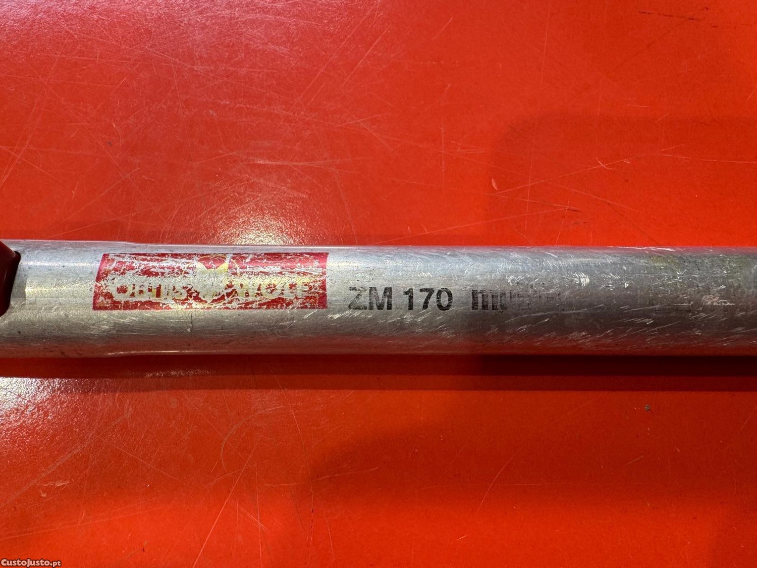 Possui um cabo de madeira de freixo sem nós com 1,70 m de comprimento.
