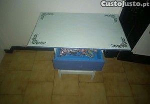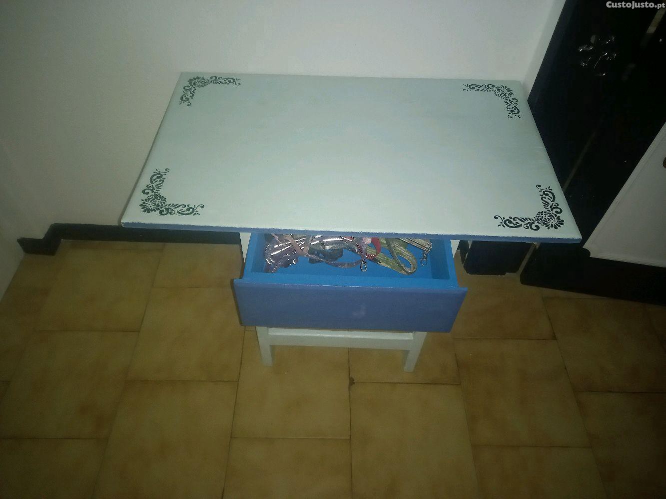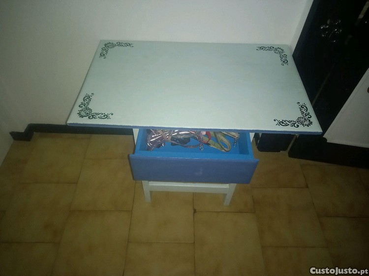 Mesa rústica decorativa pintada e encerada à mão, vintage, em bom estado de conservação, com as seguintes medidas,altura 63 cms,fundo 48 cms e de largura tem 80 cms.