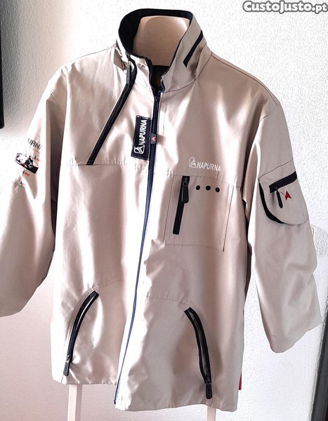 -Marca ANAPURNA, é reconhecida Internacionalmente pela sua alta qualidade. Fabrica roupa de eleição adequada para actividades ao ar livre, explorando se necessário o frio e a chuva num agradável passeio. Um Blusão para se proteger do rigor do frio, sendo impermeável à chuva, de nível superior. 4 Bolsos por fora , 3 Bolsos por dentro, e com Capuz. Tamanho S , mas serve bem quem vista M, porque é bastante folgado.