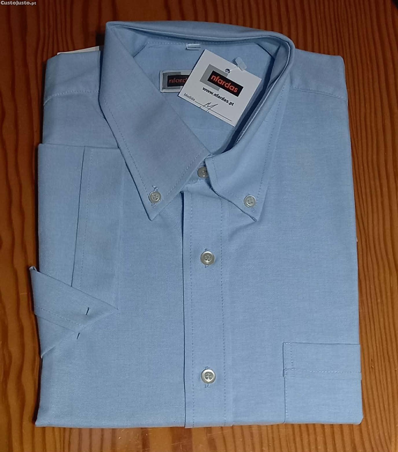 Preço: 2 €Camisa manga curta Oxford clássica em azul-claro Tam. M
