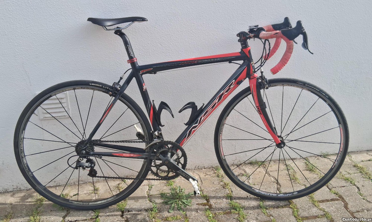 Bicicleta estrada NSR impecável material Shimano e compagnolo, Rodas Mavic (Pneus 700x250, quase novos um deles michelin), Quadro de 52mm em alumínio 6061 (TOP Quality) e Forqueta em carbono, Pedais keo, Banco de gel, bomba de mão, dois suportes para botijas de água. O valor não paga o material que tem.