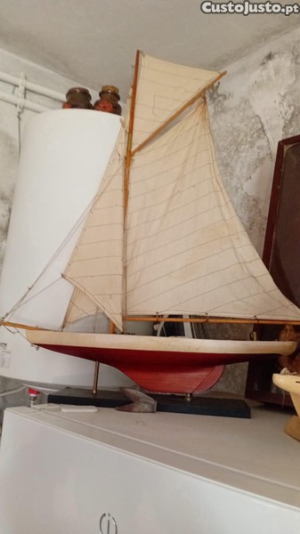 Barco antigo em miniatura, 96 cm de altura x 75 cm de largura, precisa de um pequeno restauro. Valor: 250 euros, preço de venda: 90 euros