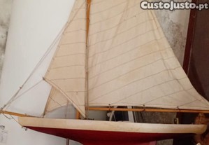 Barco antigo em miniatura, 96 cm de altura x 75 cm