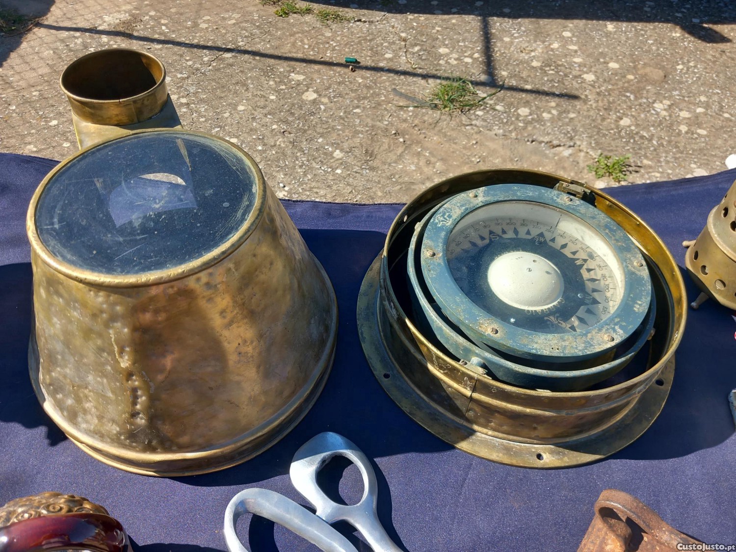 Cubichete (Cobertura): A cúpula de latão à esquerda serve para proteger o vidro e o mostrador da bússola contra a corrosão do salitre e danos físicos.