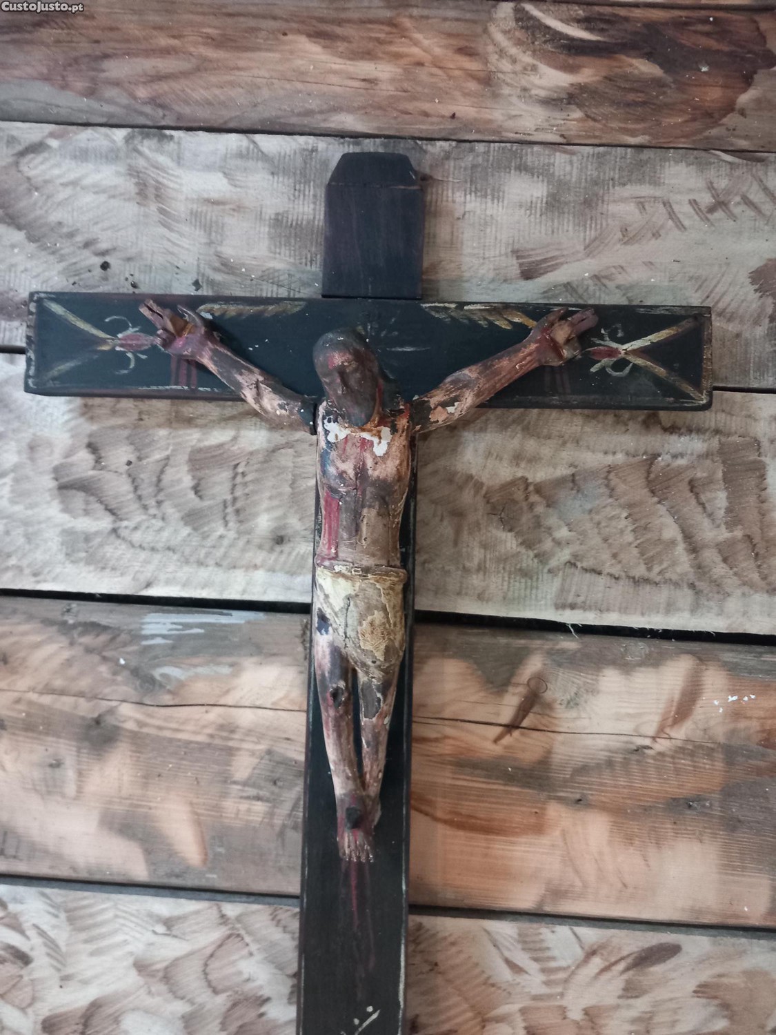 Preço: 150 €Crucifixo antigo, característico da arte sacra popular ou barroca