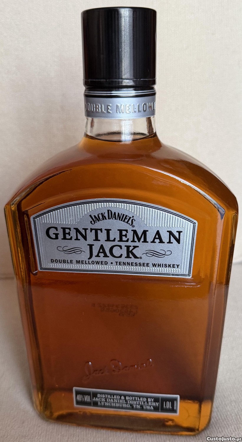 Vende-se garrafa de um litro do uísque premium Gentleman Jack Tennessee Whiskey. Este exemplar distingue-se por passar por um processo duplo de suavização em carvão vegetal, o que lhe confere uma leveza e suavidade excecionais com notas de caramelo e baunilha. O produto encontra-se novo, lacrado e com os seus selos originais de garantia. Com graduação alcoólica de quarenta por cento de volume, esta unidade de um litro é a escolha ideal para quem aprecia um uísque sofisticado e equilibrado.