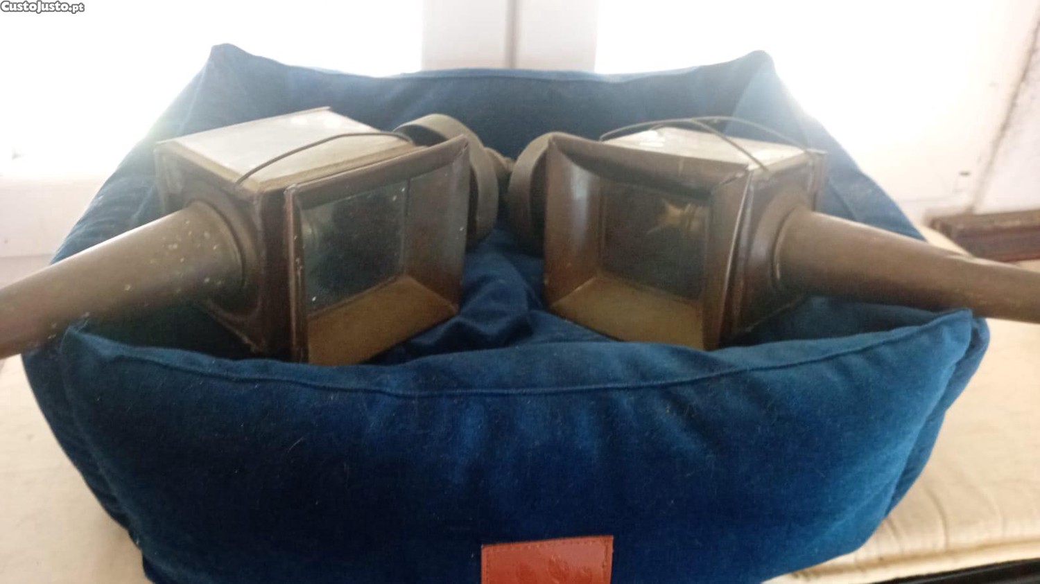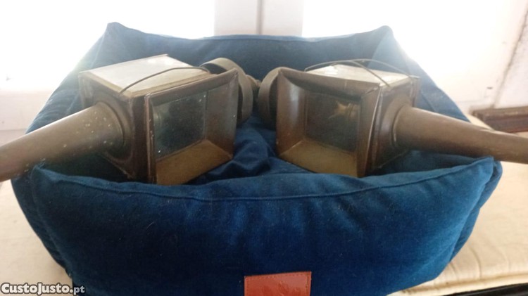 Preço: 40 €Par de antigas lâmpadas de carruagem em cobre