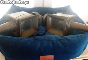 Par de antigas lâmpadas de carruagem em cobre