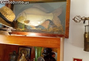 Peixe antigo em resina com moldura de vidro