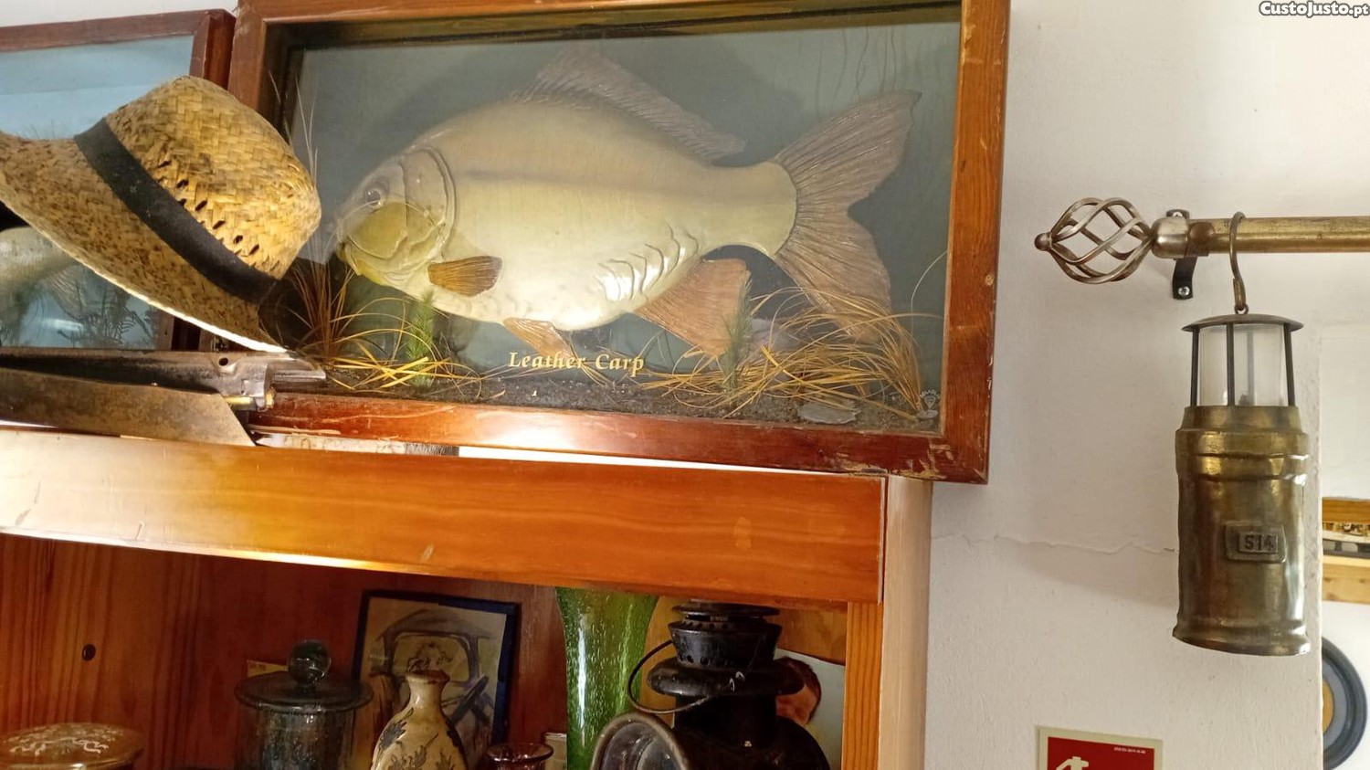 Preço: 90 €Peixe antigo em resina com moldura de vidro