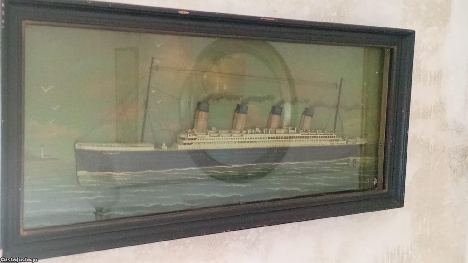 Titanic antigo, emoldurado e sob vidro.