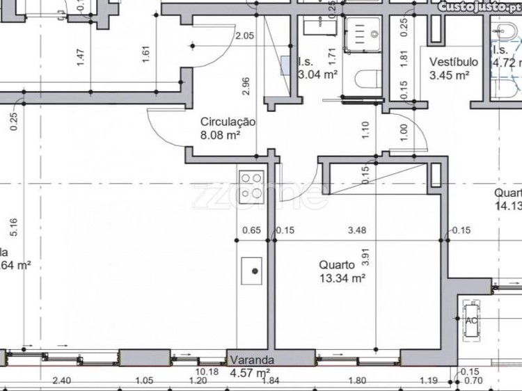 - Área descoberta individual na cobertura, afeta a cada fração, destinada a arrumos
