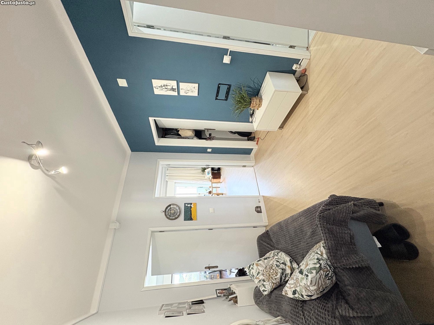 Hall de entrada amplo, cozinha espaçosa, casa de banho, arrecadação, lavanderia, dois quartos, varanda bem espaçosa e com muito sol.