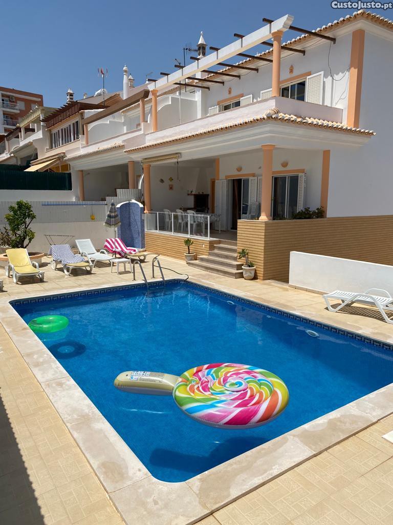 alugo moradia privada no Algarve com piscina privada a uma distancia da praia de 400/500mts da praia bem como de todo comercio e supermercados a 100mts do continente ao que pode deslocaren-se a pé, pois nao carece de carro para se deslocarem como disse tudo fica por perto, e composta por 4 quartos 3 banheiros, sendo que um quarto e suite cozinha despensa sala em comum estacionamento parte extrior da casa, possui uma boa area de lazer em volta da piscina pois a piscina tem sol o dia todo possui tb churrasqueira e uma area onde pode tomar as refeições no exterior da casa .tal como mostra as fotos, tem wifi e ar-condicionado em 3 dos quartos