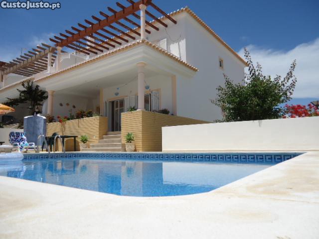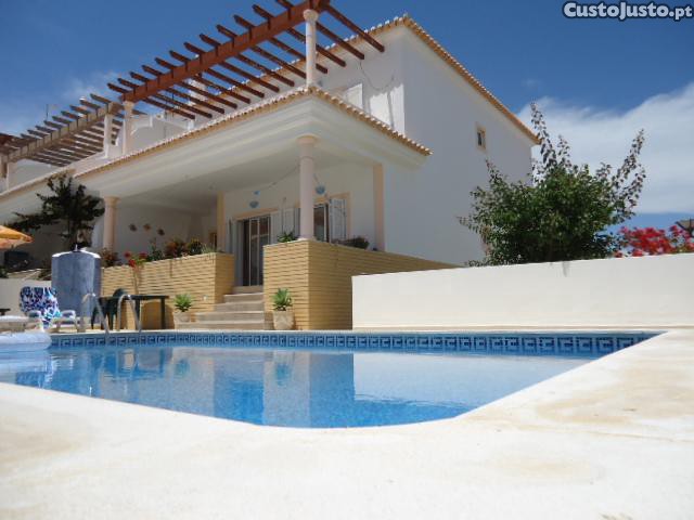 alugo moradia privada no Algarve com piscina privada a uma distancia da praia de 400/500mts da praia bem como de todo comercio e supermercados a 100mts do continente ao que pode deslocaren-se a pé, pois nao carece de carro para se deslocarem como disse tudo fica por perto, e composta por 4 quartos 3 banheiros, sendo que um quarto e suite cozinha despensa sala em comum estacionamento parte extrior da casa, possui uma boa area de lazer em volta da piscina pois a piscina tem sol o dia todo possui tb churrasqueira e uma area onde pode tomar as refeições no exterior da casa .tal como mostra as fotos, tem wifi e ar-condicionado em 3 dos quartos