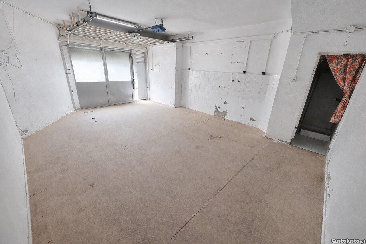 Espaço amplo situado no rés do chão de um prédio, com portão automático, oferecendo excelentes condições para estacionamento de vários veículos, arrumos ou utilização como pequeno armazém.