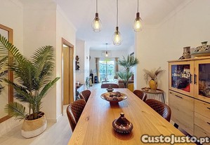 No piso térreo, encontra-se um hall de entrada que conduz a uma cozinha totalmente equipada, uma casa de banho de serviço e uma ampla sala de estar e jantar, ideal para momentos em família. O acesso direto à área exterior privativa, que conta com três níveis distintos, proporciona um espaço perfeito para relaxar ou entreter amigos, incluindo uma zona de barbecue. No piso superior, duas suítes com varandas privativas oferecem o máximo conforto e privacidade.