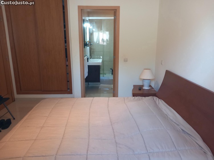 O quarto encontrar-se num condomínio fechado com três moradias ao calmo e de comércios e transportes públicos,