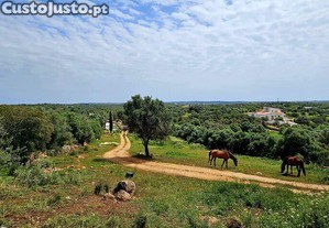 O terreno está totalmente limpo e bem mantido, com muros de pedra cuidadosamente concebidos que criam uma disposição estruturada e atrativa. Um sistema de irrigação distribui a água do furo por vários pontos da propriedade.
