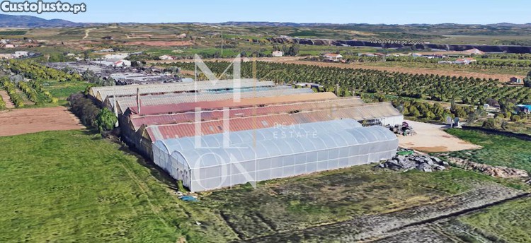 Terreno com uma área total de 22.720m, este terreno possui uma área urbana de 200m2 e é composto por três estufas individuais de vidro com estrutura galvanizada, cada uma com 1500m2. As estufas estão cimentadas e equipadas com sistemas de rega e possibilidade de recuperação de água