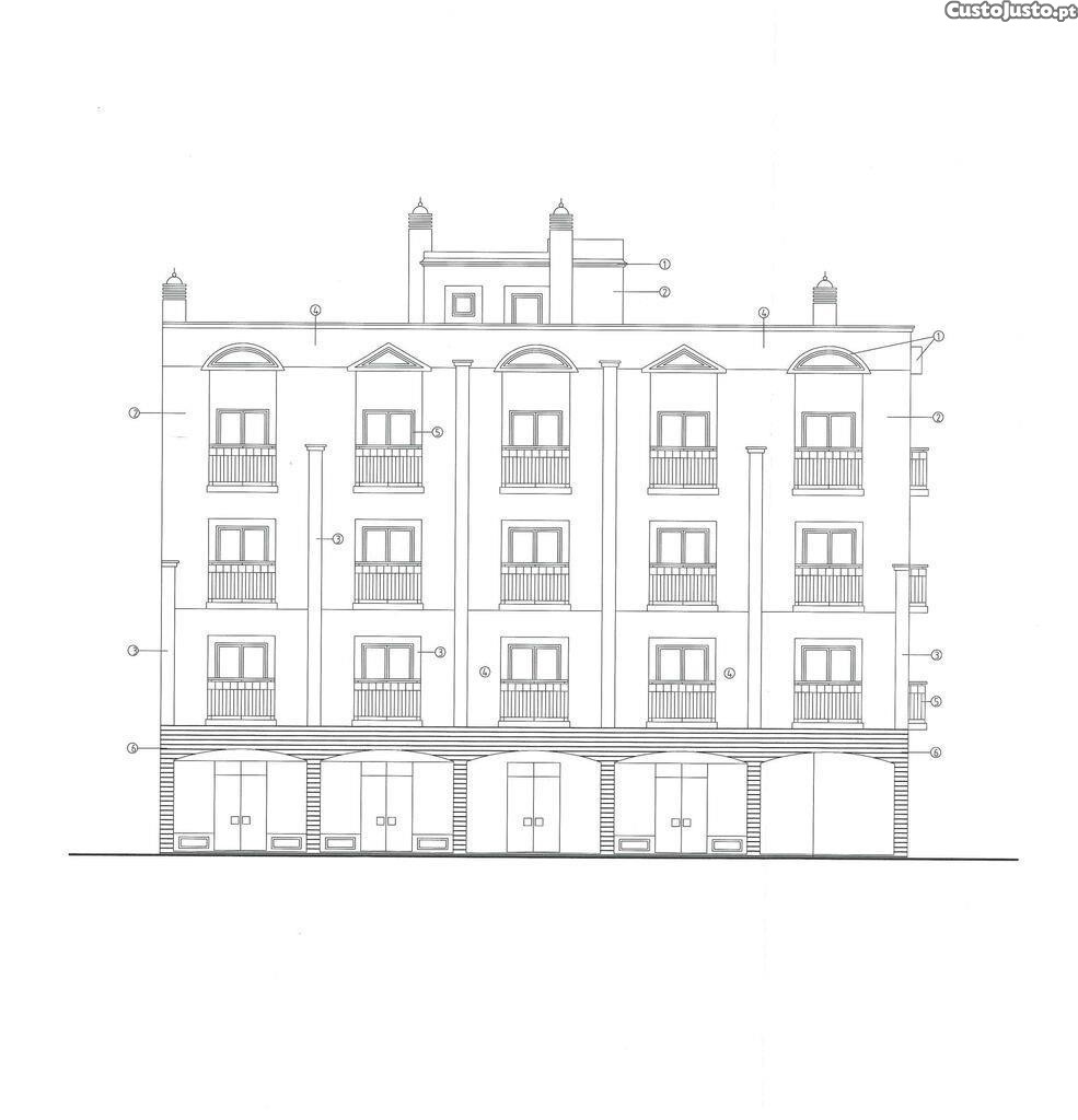 Com um projeto para construir no R/C 3 lojas e nos pisos superiores 9 apartamentos (6 apartamentos com 2 quartos e 3 apartamentos com três quartos).