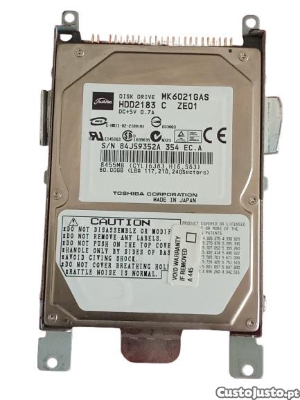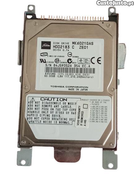 Preço: 13 €Disco Rígido 60GB IDE 2.5 Toshiba MK6021GAS